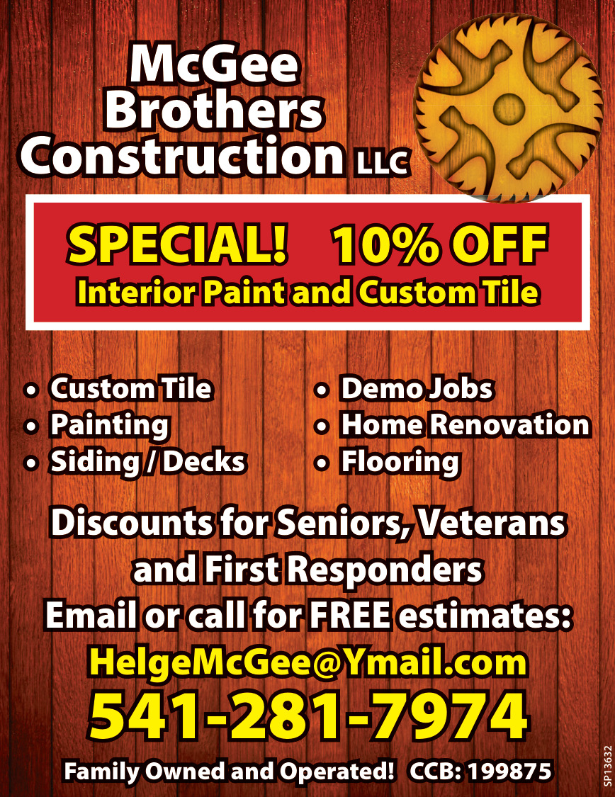 Apr 01, 2026. McGee Brothers Construction LLC Contractor/Home Improvement Ads from Klamath Falls Services